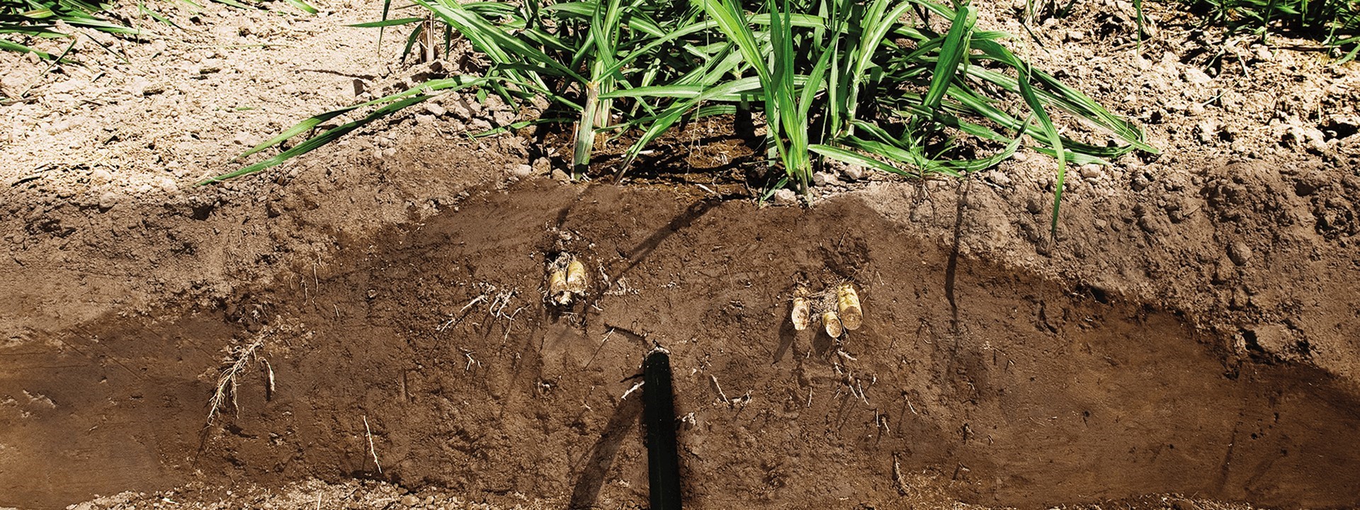 When a drip lateral is buried at 30 cm, roots need to ‘chase’ the water. This leads to a very healthy root structure that penetrates deep into the ground as opposed to concentrating on the surface.
